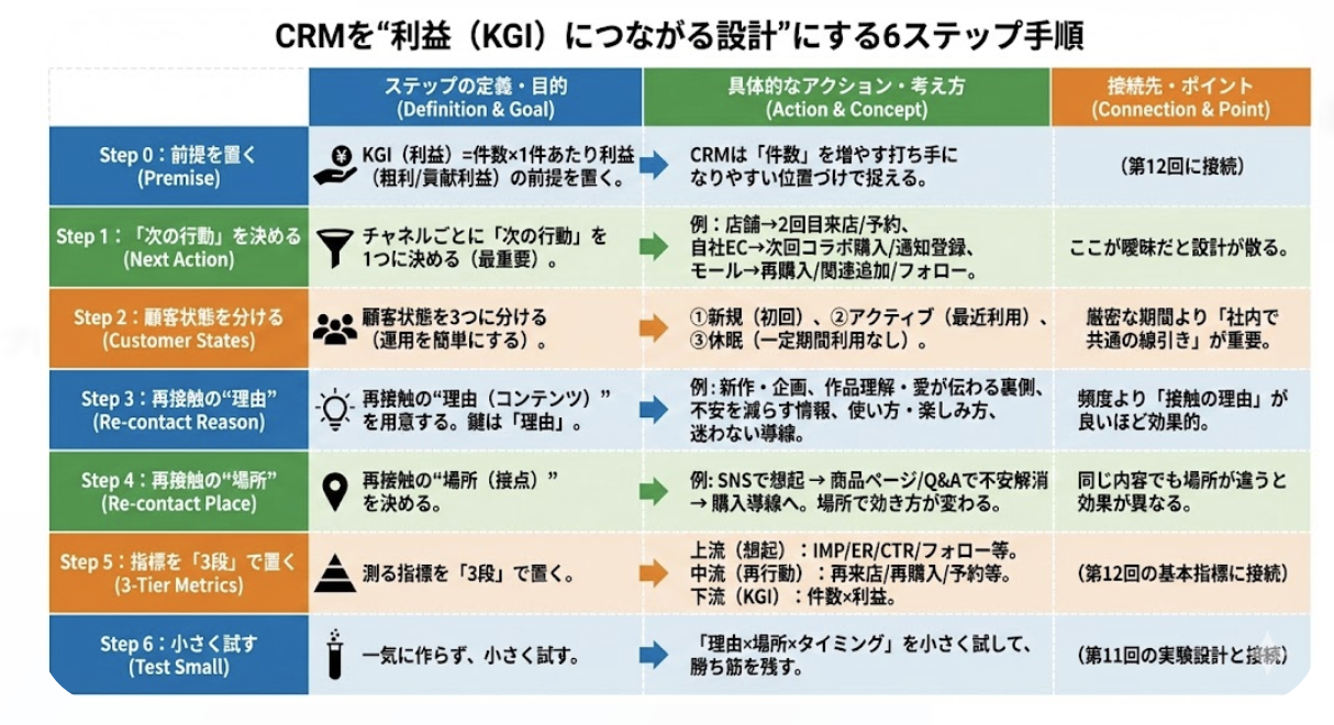 3. どの順序で考えるか:CRMを“利益(KGI)につながる設計”にする手順