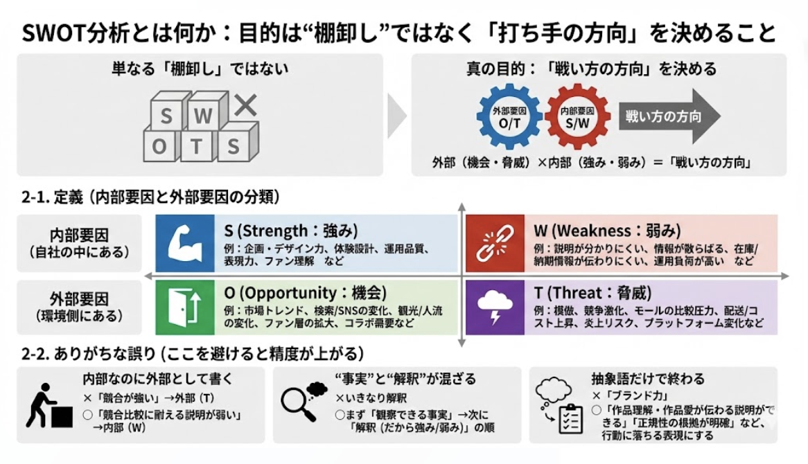 2. SWOT分析とは何か:目的は“棚卸し”ではなく「打ち手の方向」を決めること