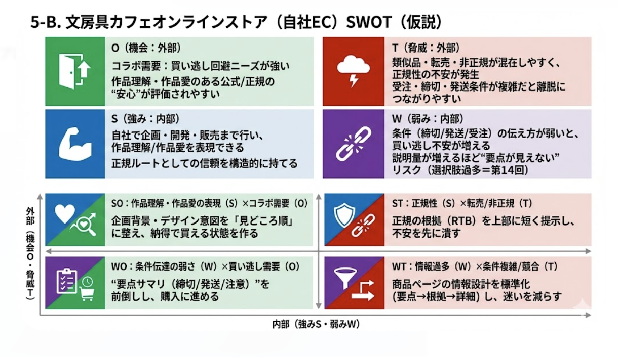 5-B. 文房具カフェオンラインストア(自社EC)SWOT(仮説)
