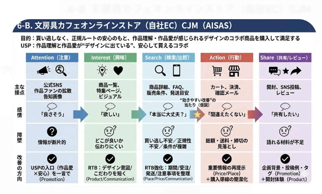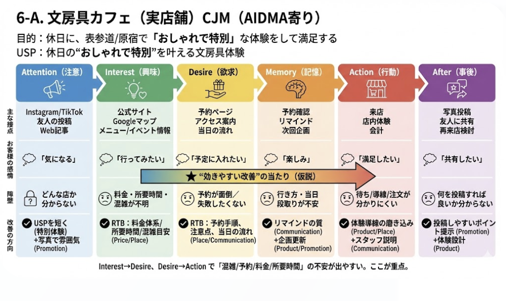 ① 文房具カフェ:実店舗CJMを作る(AIDMA+接点・感情)