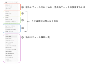 ⑤ここに過去のチャット履歴が一覧で並んでいる。